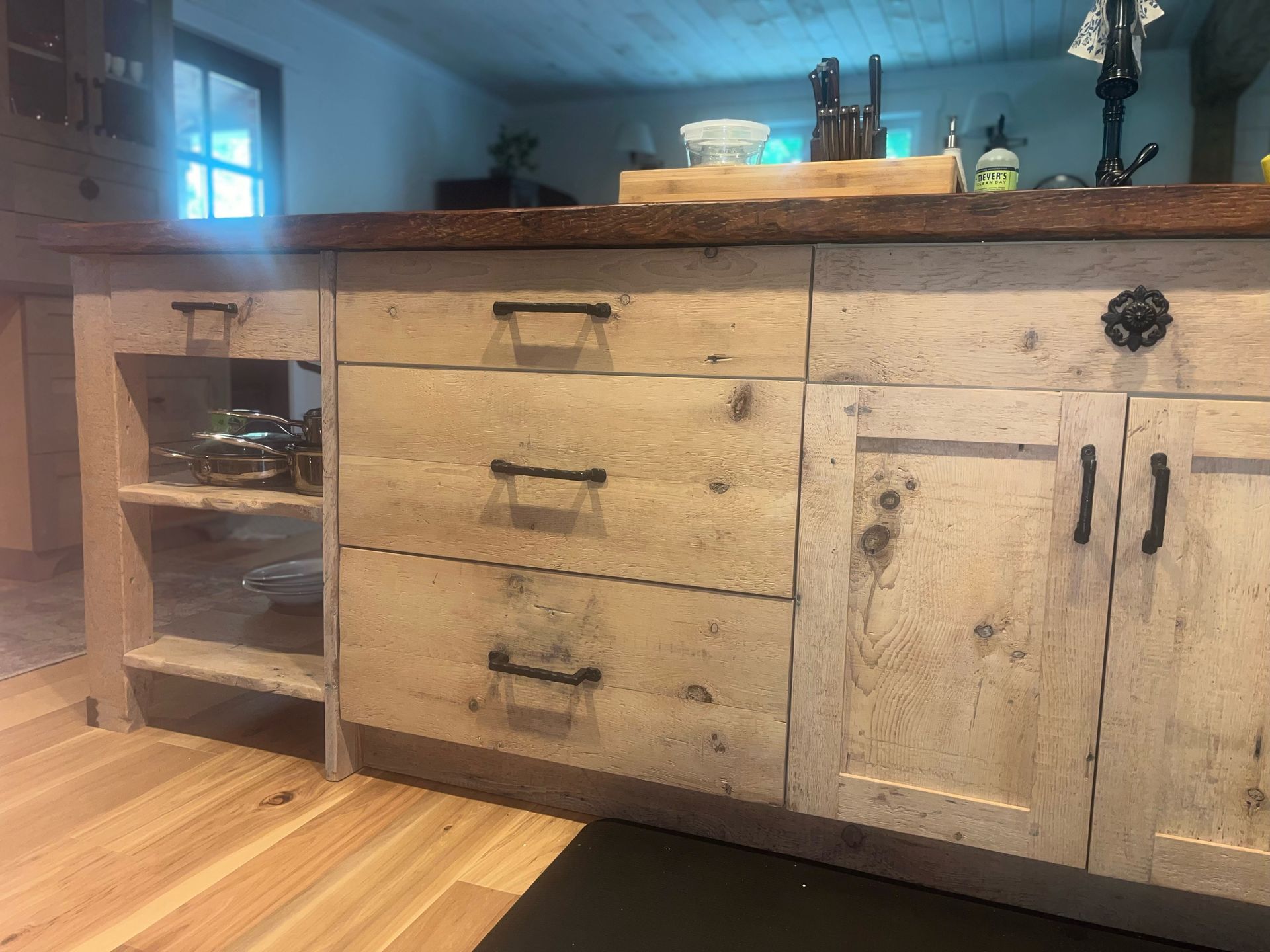 Our custom woodworking projects are crafted exclusively with you in mind, offering unique opportunities to personalize your design. This includes working with hand-selected, character-rich woods, such as authentic reclaimed barn boards, or even milling your own lumber from responsibly sourced, downed trees.